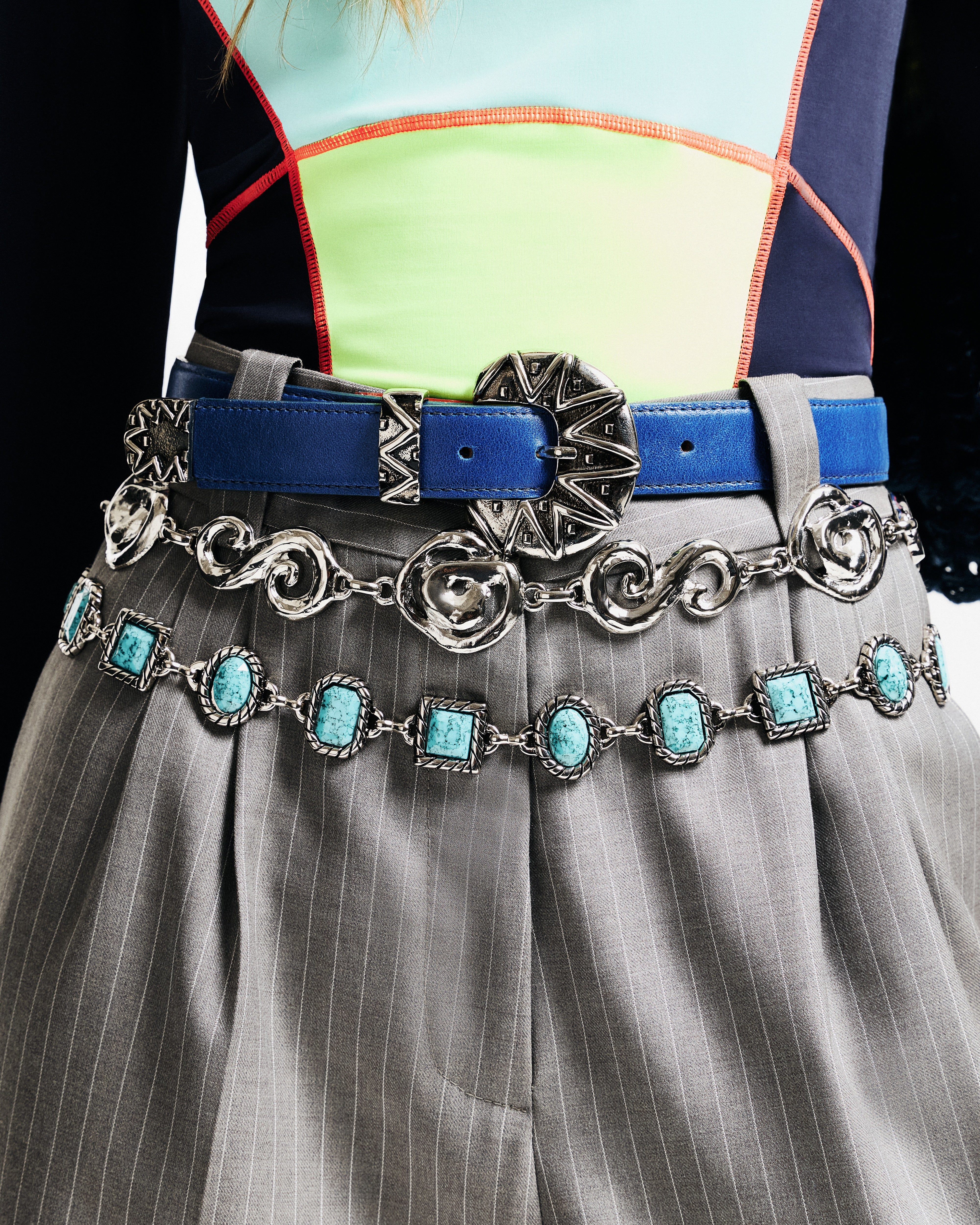 O cinto Gatti é feito em metal dourado, suas peças tem o formato sinuoso que cria um efeito delicado e fluido, como um traço desenhado sobre a cintura. Seu fecho ajustável faz com que ele possa ser usado tanto na cintura quanto no quadril. Ideal para adicionar um toque especial à qualquer composição.