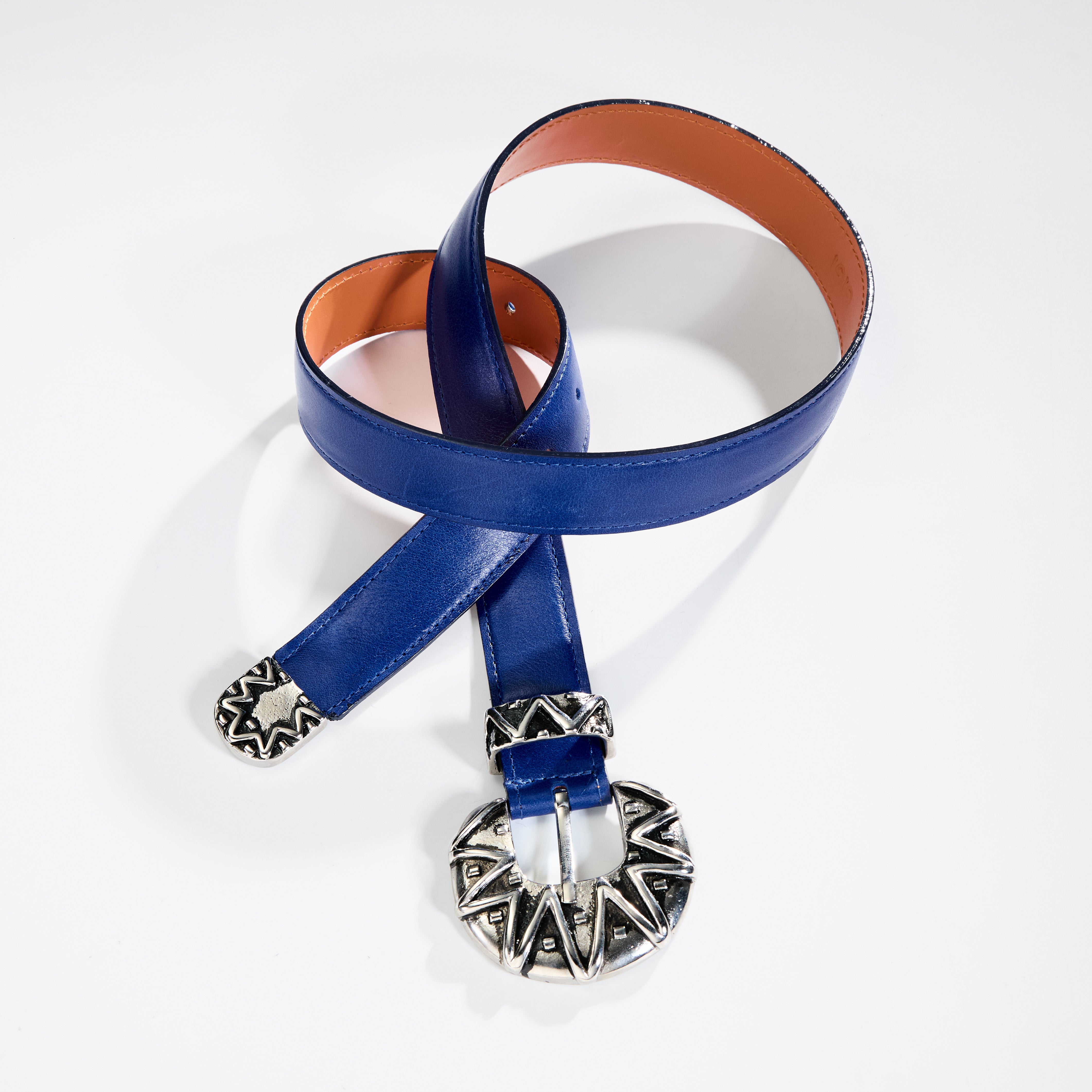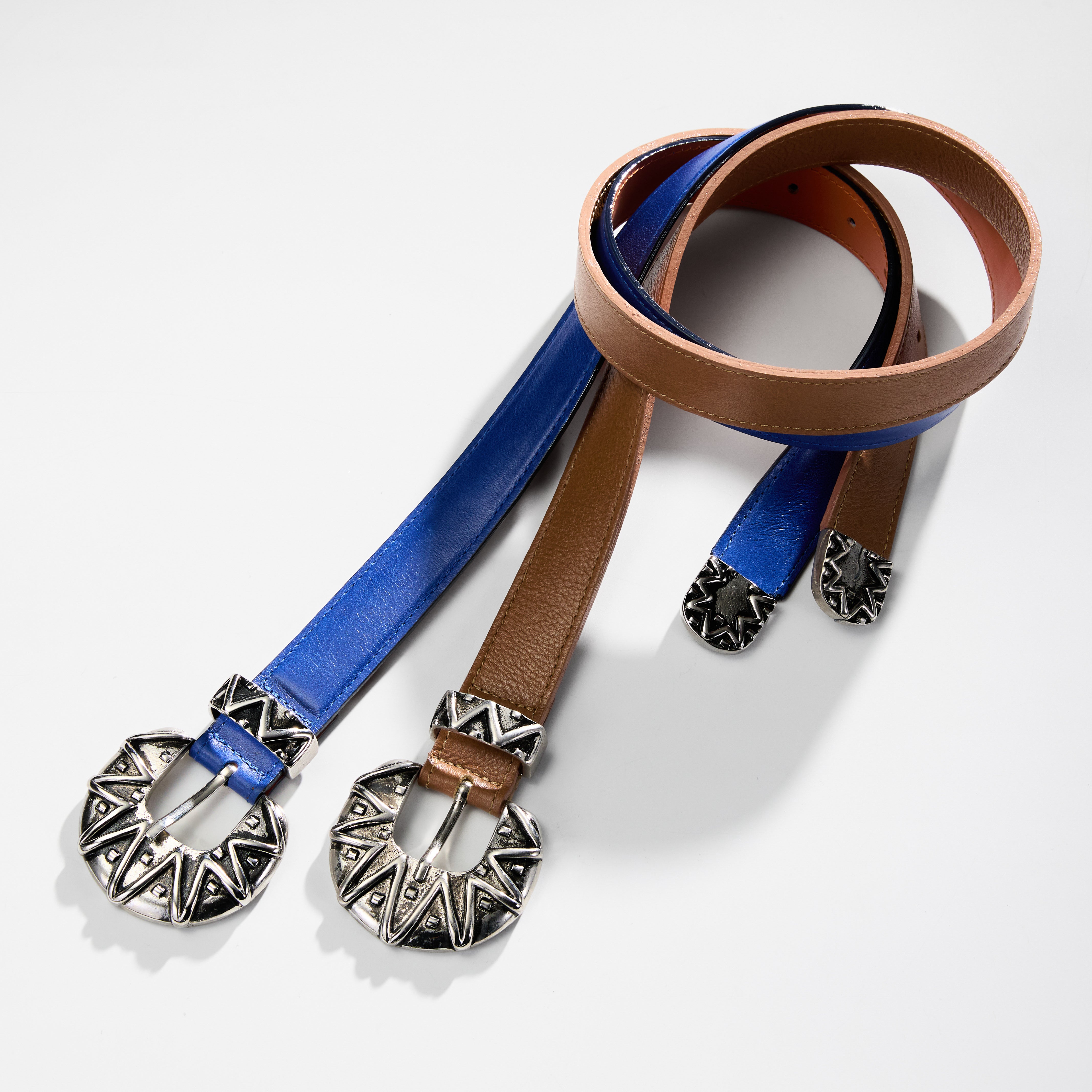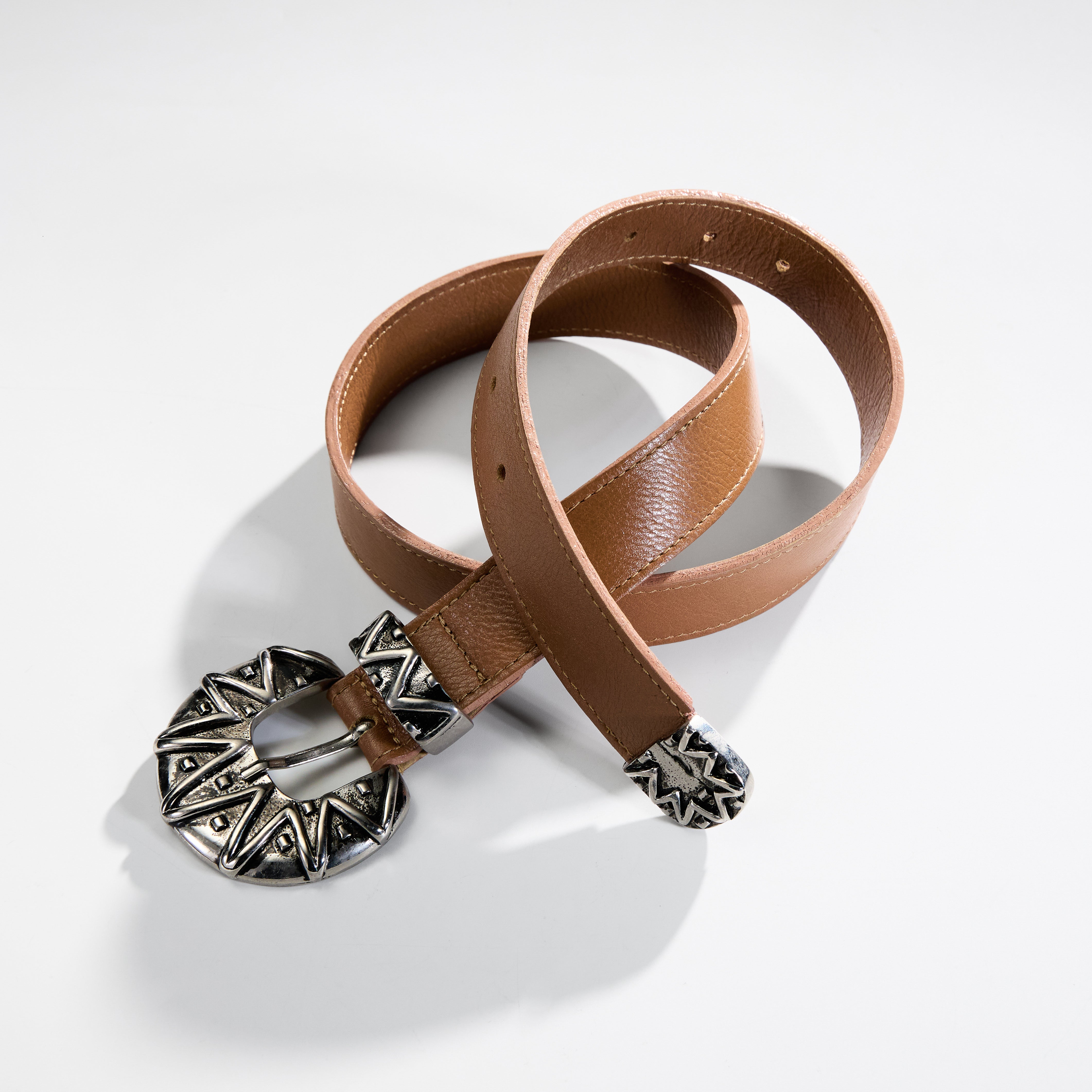 Basic mas nem tanto! O cinto Gandalla é um cinto de couro legítimo com fivela passante e ponteira em banho prata envelhecida. A força do deserto mexicano se une à elegância nômade de Tulum neste modelo que é Soluna! detalhe: forro de couro em cor contrastante.